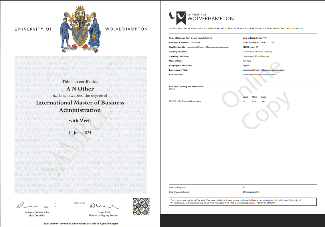 Yes. This is an official MBA degree awarded by recognised UK universities, including the University of Wolverhampton, delivered in compliance with UK academic standards.